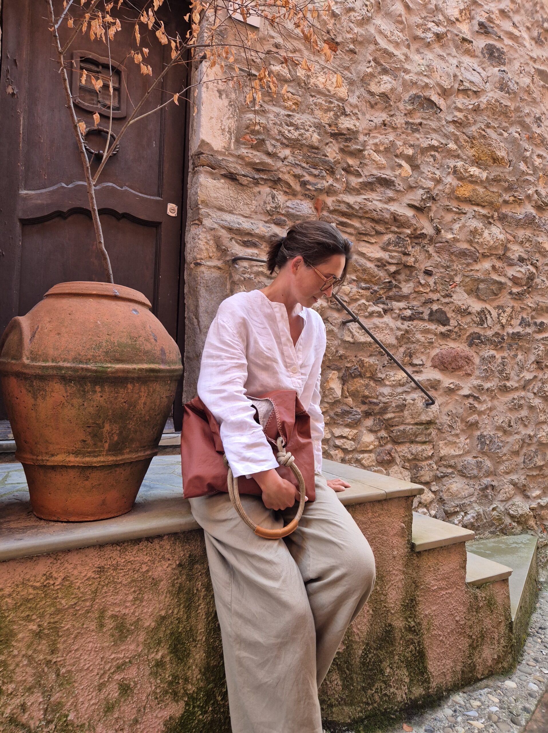 W tym sezonie dominują ciepłe brązy (mocha / chocolate), które nadają stylizacjom poczucie „quiet luxury”- elegancji bez nadmiaru. To idealne tło dla torby na ramię z żagli. Brązowa szopperka świetnie wygląda z wełnianym płaszczem i skórzanymi botkami. Żagle czują się idealnie w każdej pogodzie i do każdej kurtki czy płaszcza, nawet tego eleganckiego. A my dodajemy do brązowych żagli złote, granatowe i oliwkowe liny żeglarskie, by przełamać naturalnym akcentem brązową dominację.