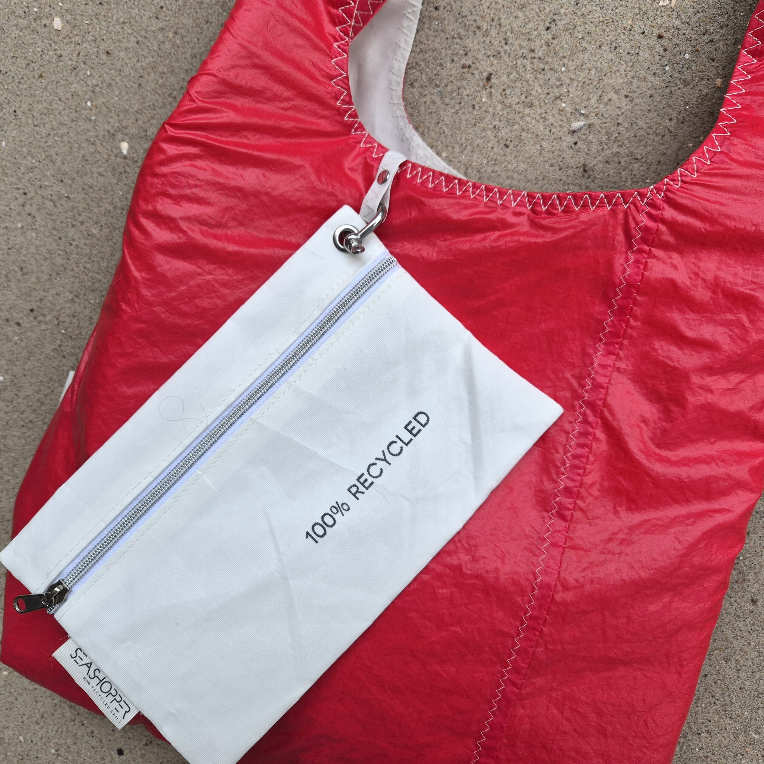 Czyścimy je z troską, jednak mimo to zachowują delikatne ślady swojej historii. Właśnie dlatego każda torba z żagli SeaShopper jest wyjątkowa, ponieważ każdy żagiel ma za sobą własną unikatową podróż. Jednocześnie jego detale przypominają o morskich przygodach, które przetrwała.