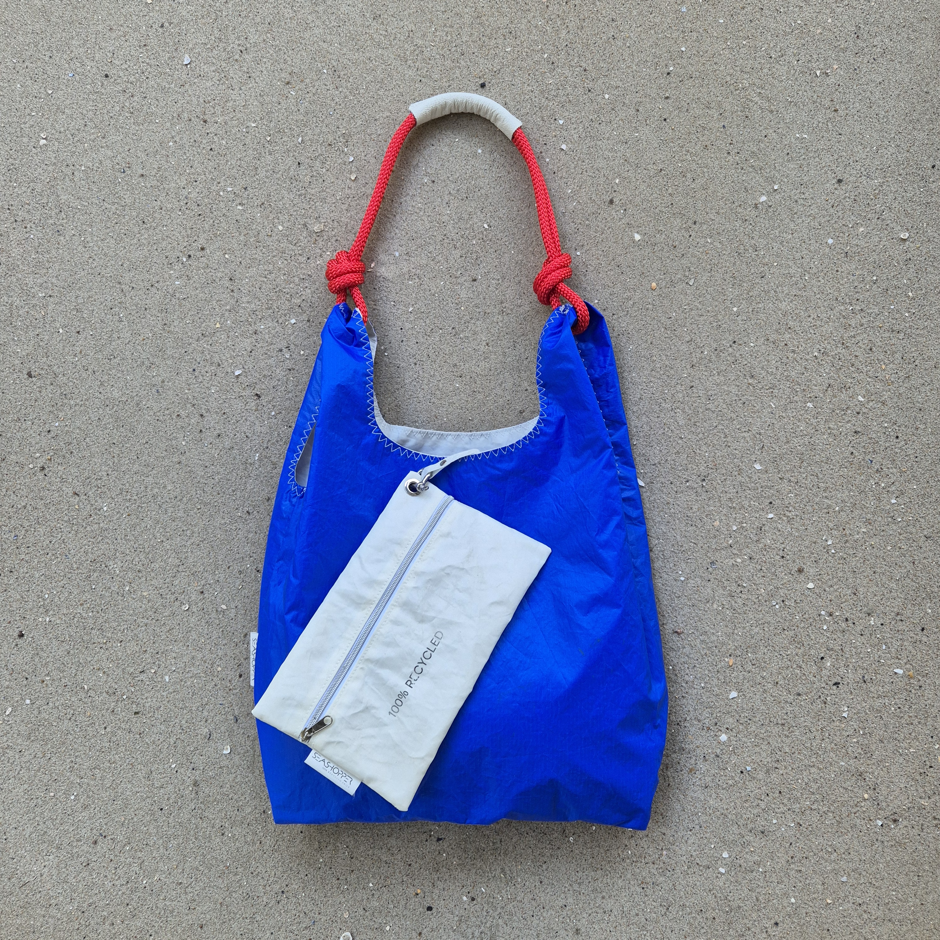 Czyścimy je z troską, jednak mimo to zachowują delikatne ślady swojej historii. Właśnie dlatego każda torba z żagli SeaShopper jest wyjątkowa, ponieważ każdy żagiel ma za sobą własną unikatową podróż. Jednocześnie jego detale przypominają o morskich przygodach, które przetrwała.